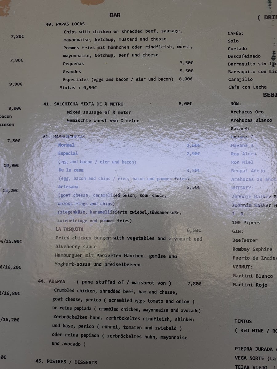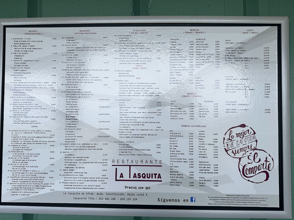 The menu features tapas-style options like Gambas Al Ajillo and Chipirones Con Papas Fritas, alongside heartier choices such as Solomillo de Cerdo Con Salsa de Naranja and the popular Hamburguesa la Tasquita. Fresh local ingredients come through in dishes like Mixed Salad Grilled Cheese and classic Papas Arrugadas, making for simple, satisfying plates that pair well with a relaxed atmosphere.